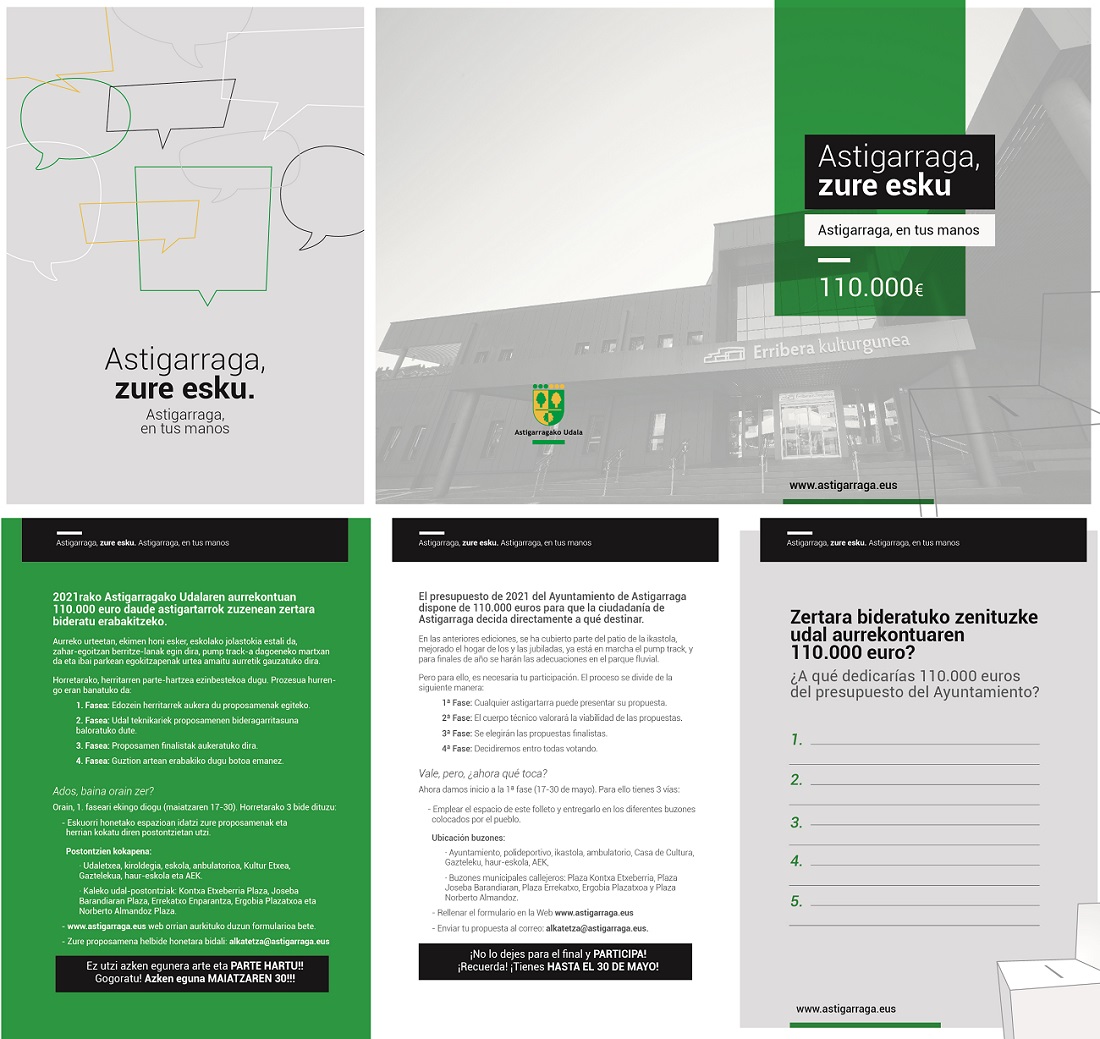 1. Etxebizitza guztiei banatu zaien esku-orrian idatzi zure proposamenak eta herrian kokatu diren postontzietan utzi.